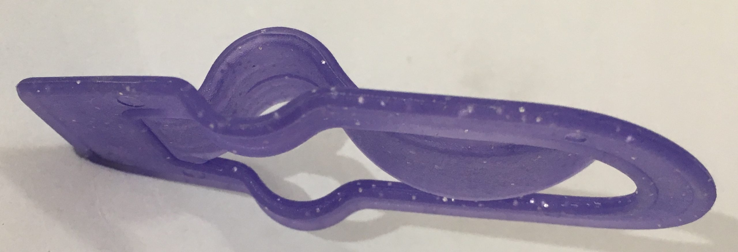 Este produto vem nas cores amarelo e lilás translúcidos e com glitter suave,